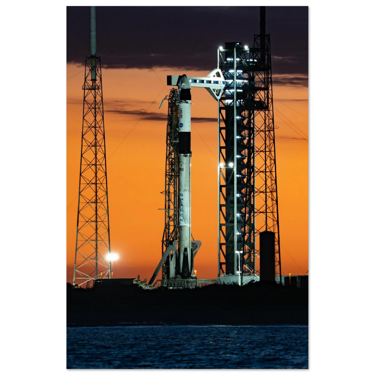 With the Crew Access Arm extended at SLC-40, a Crew Dragon capsule sits atop Falcon 9 at sunset a day before its planned liftoff on Crew-12. It's been rare to see a crew launch from this pad, but with LC-39A focusing on Falcon Heavy and Starship, we get this awesome view from a boat in the Atlantic.