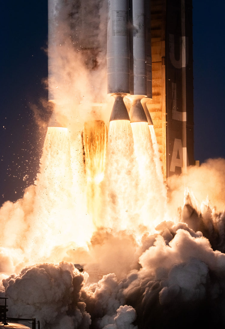 "Seen here in its most powerful configuration, Atlas V storms off of SLC-41 with its five GEM-63 solid rocket motors and single RD-180 core stage engine. The contrast in exhaust from all of these together has always been one of the greatest spectacles to photograph and also one of the reasons why Atlas is so special in the modern lineup of US launch capability." - Max Evans