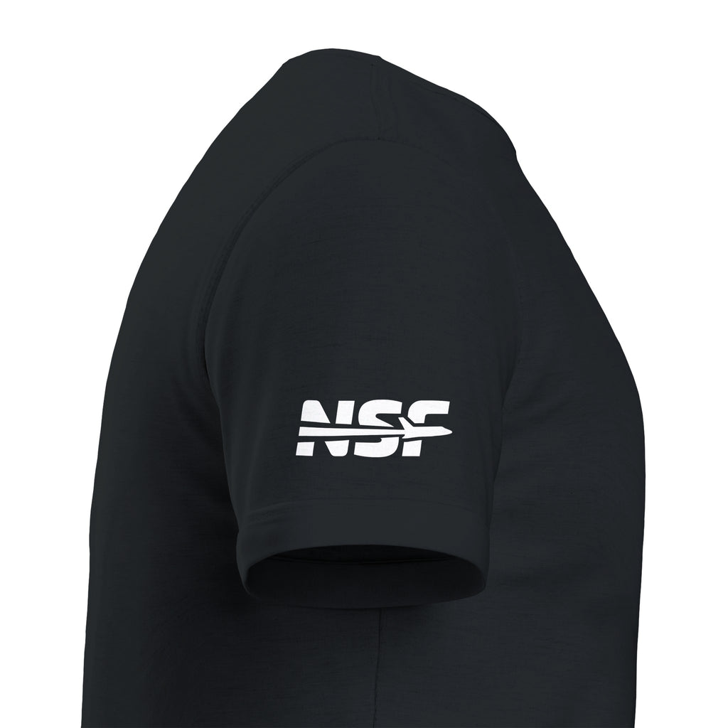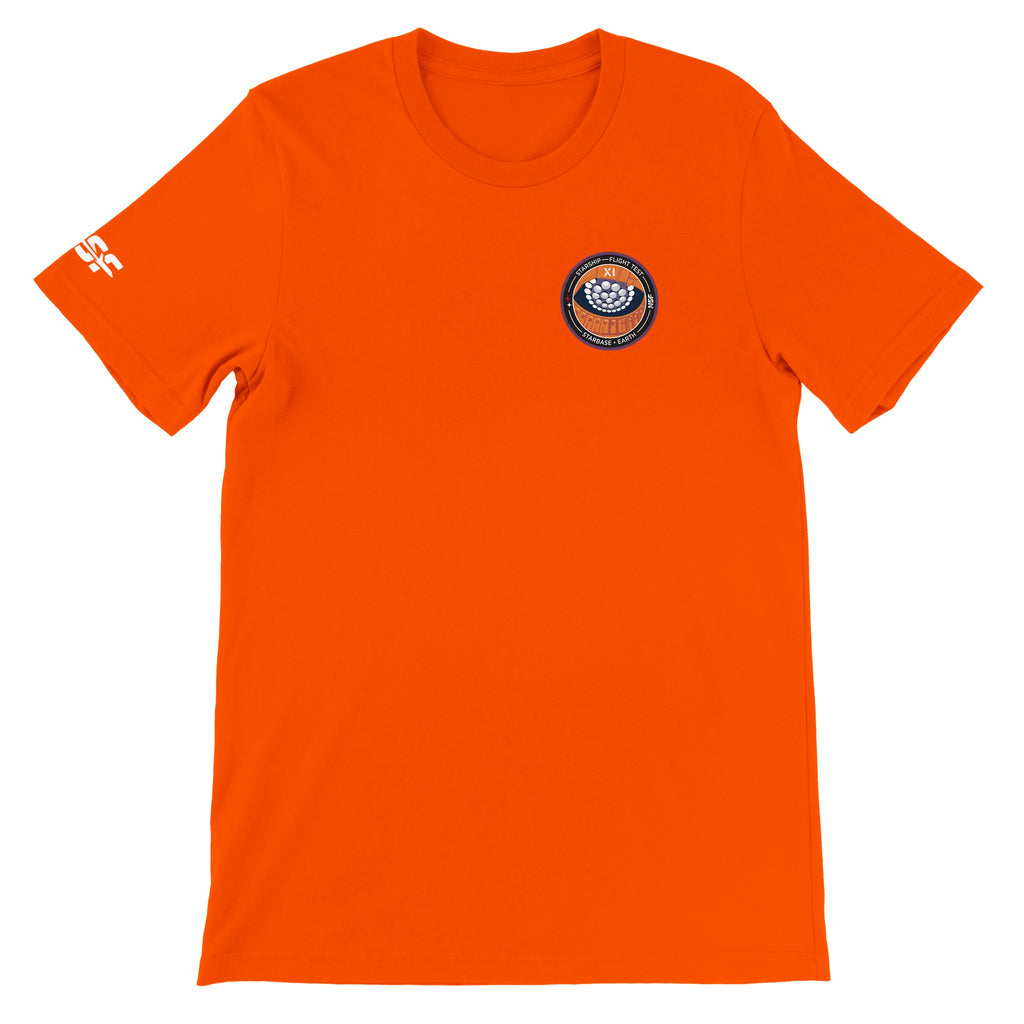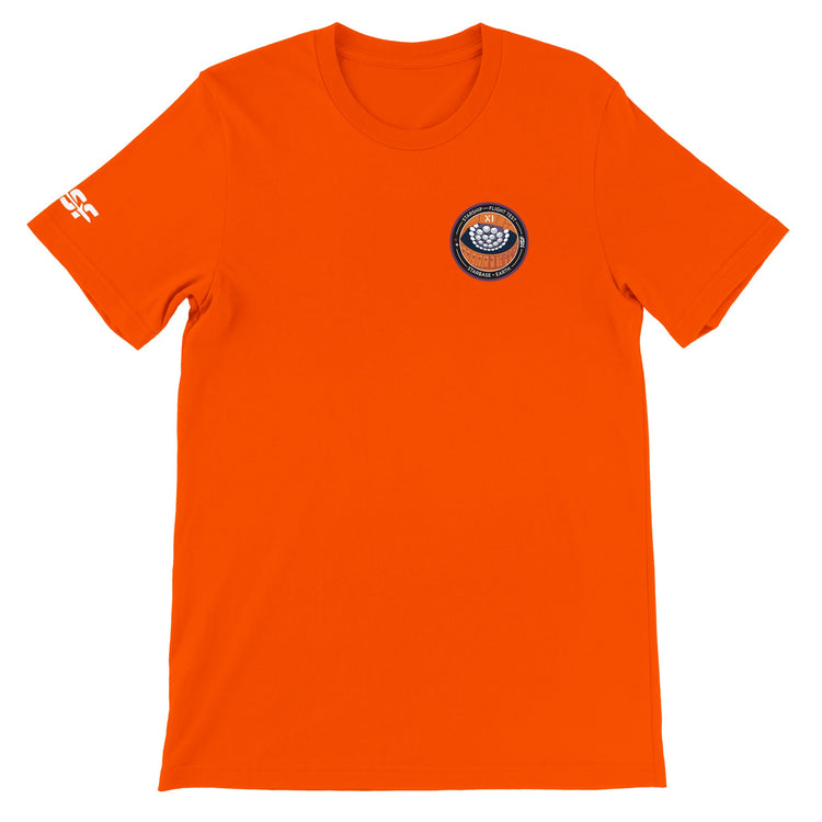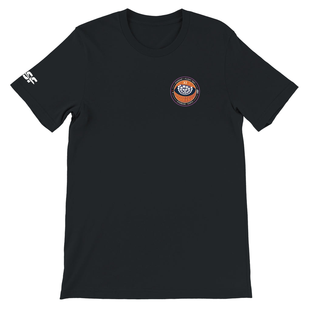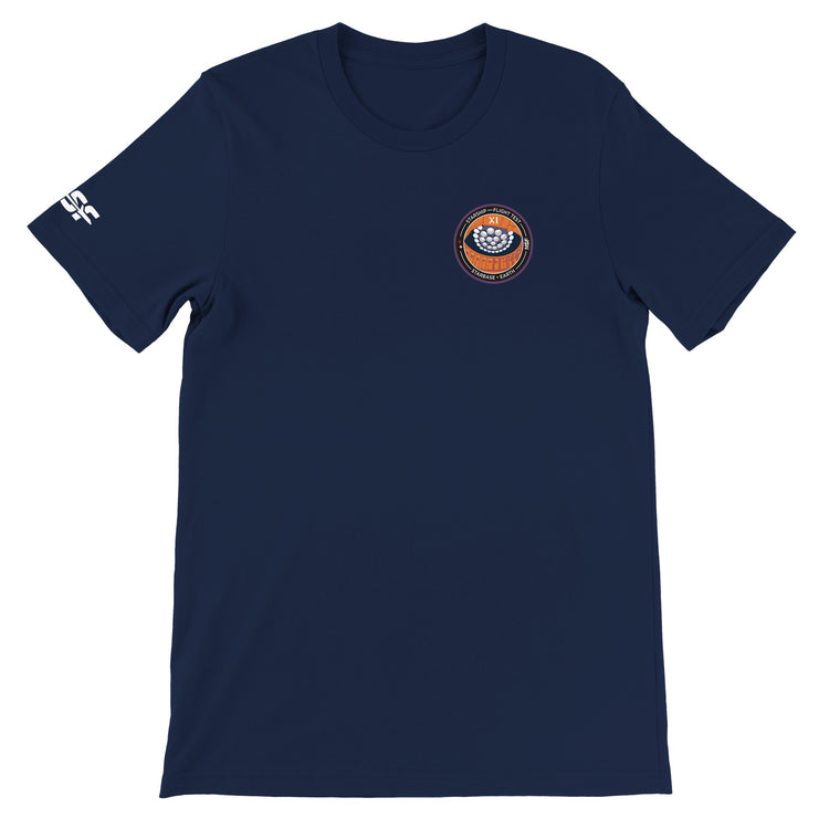Unisex tee with Starship Flight 11 patch art. 100% combed & ringspun cotton.