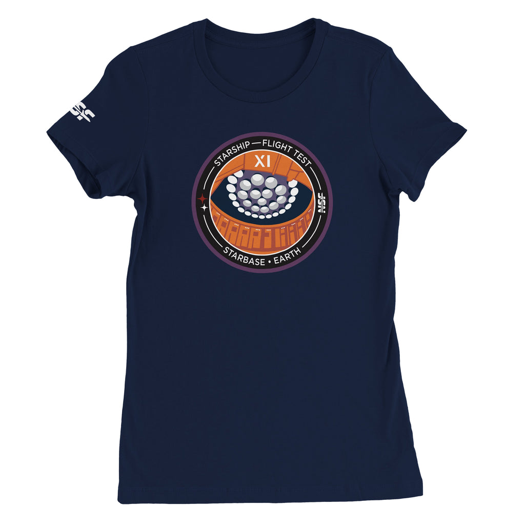 Built for everyday wear, this women’s tee features the Starship Flight 11 patch art on soft 100% combed and ringspun cotton. Clean print, breathable fabric—easy to pair with anything in your launch-day lineup.