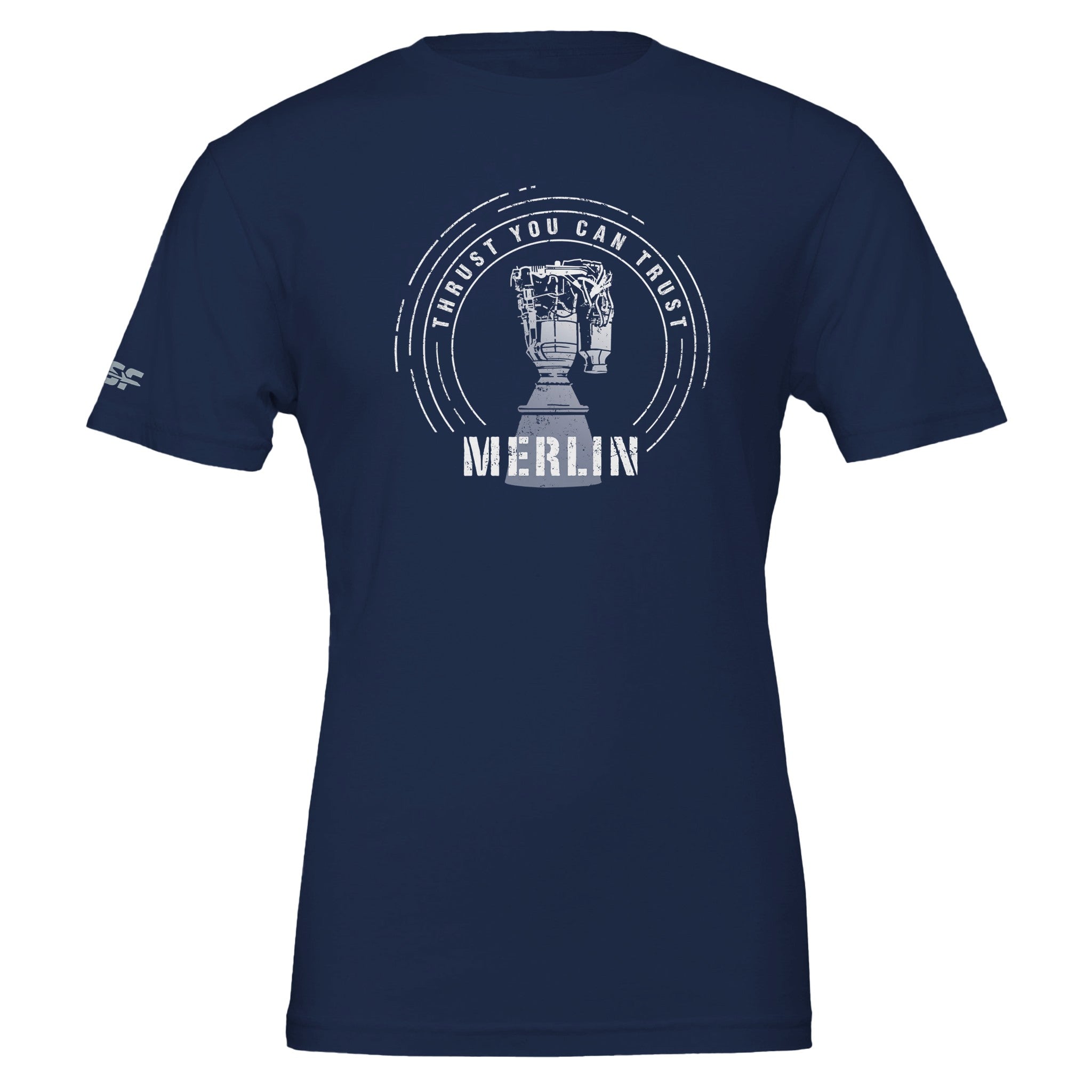 Presenting: Merlin - The workhorse engine of the Falcon 9 Rocket, is one of the most used engines in the history of spaceflight. Both used on Falcon 9, and the bigger Falcon Heavy, it flew a few of the most legendary spaceflight missions of all time, and it is stll going strong, with over 140 flights expected in 2024! Show your love for the master of reliability, with this special design!